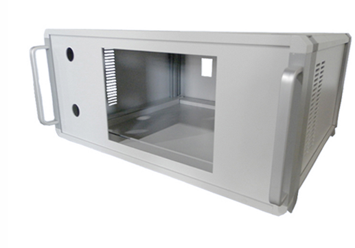 G型機箱由蓋板,底板,前面板,后面板,側(cè)板,前梁,后梁,前法蘭,后法蘭等配件組裝而成,為機架式機箱,把手兩側(cè)帶有耳朵直接固定的機器內(nèi)。機箱表面處理分為噴塑、氧化等。