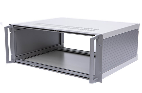 U型機箱由上蓋板,下蓋板,前面板,后面板,側(cè)板配件組裝而成,可做為機架式或臺式機箱,機架式機箱兩側(cè)帶有耳朵直接固定的機器內(nèi),臺式款式可以去掉兩側(cè)耳朵。